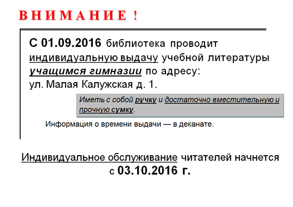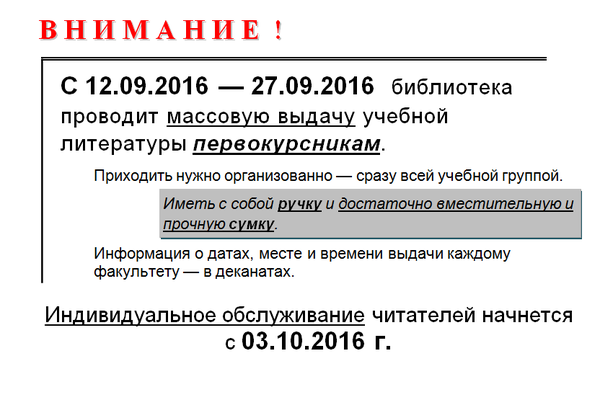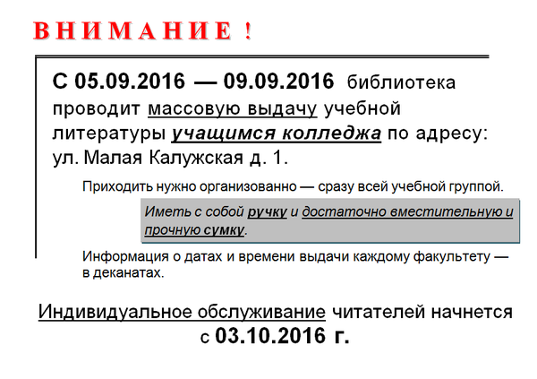 НАПОМИНАЕМ ВАМ О ТОМ, ЧТО ДО 11 ИЮЛЯ НЕОБХОДИМО СДАТЬ В БИБЛИОТЕКУ ВСЮ УЧЕБНУЮ ЛИТЕРАТУРУ, ПРОЙТИ ПЕРЕРЕГИСТРЦИЮ И ПРОДЛИТЬ ЧИТАТЕЛЬСКИЕ БИЛЕТЫ.