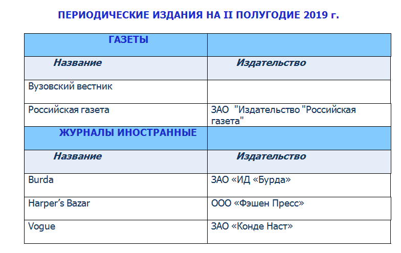 Периодические издания 2019